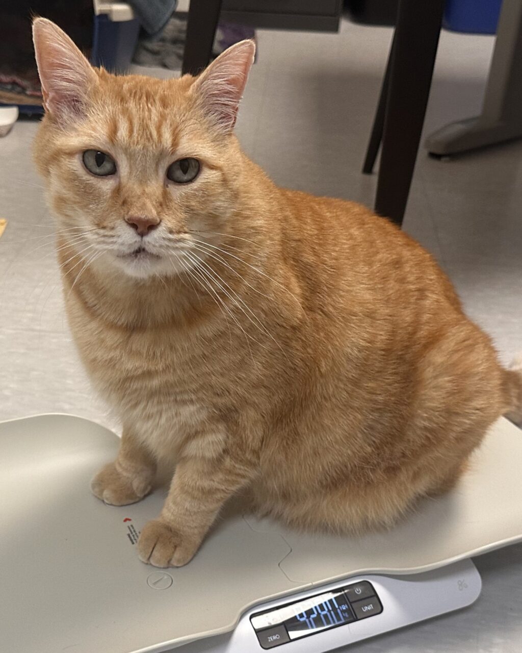 What we could confirm was this: at 22 pounds, Goldie’s excess weight was likely putting strain on his airway. The best place for him to safely lose weight and heal was a foster home. So on July 26th, Goldie said his goodbyes and moved into foster care.
