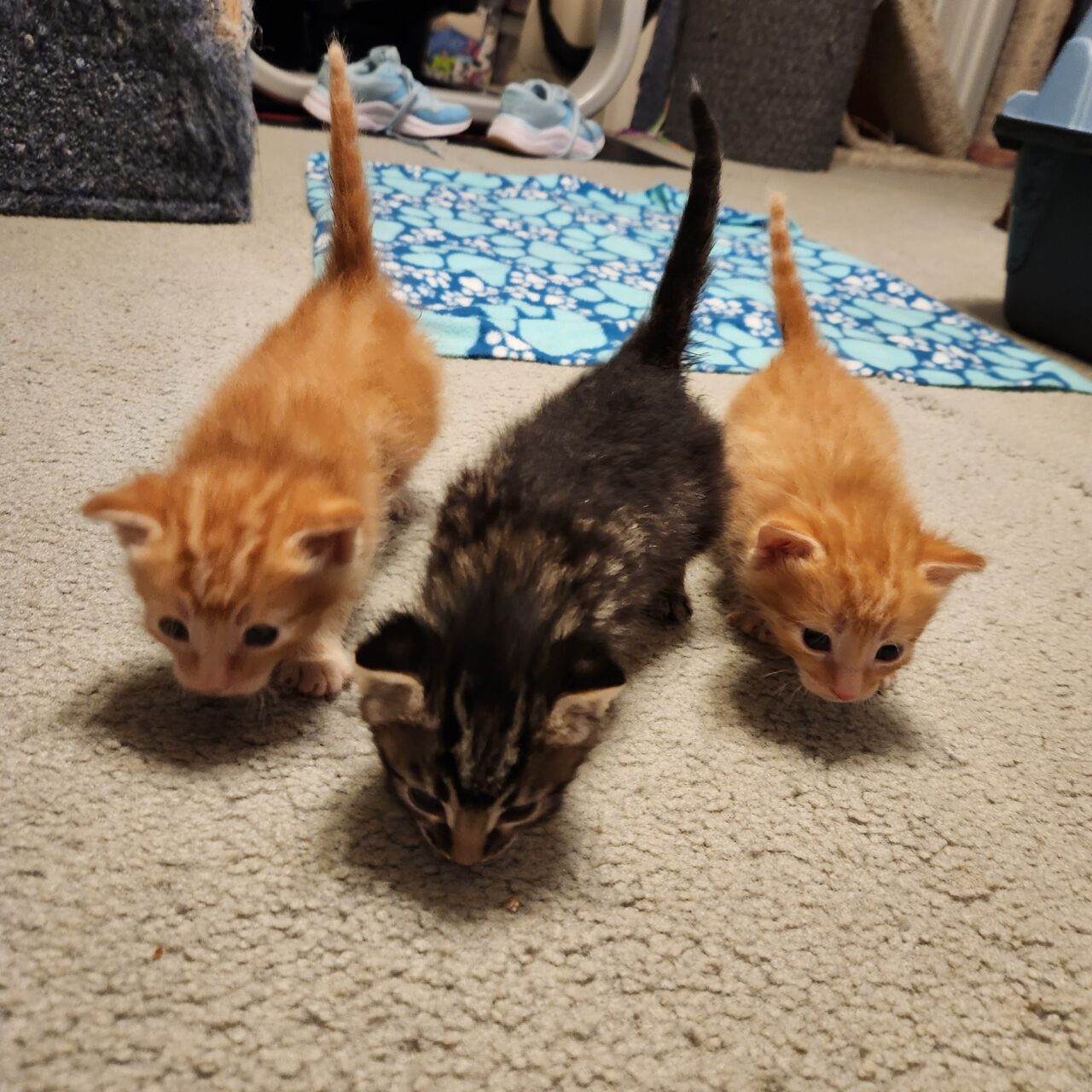 The mother of these three little ones developed mastitis and could no longer nurse them, leaving the three-week-old kittens in need of round-the-clock bottle feeding. Fortunately, they had healthy appetites – and thanks to their dedicated foster family, they began growing bigger and stronger every day.