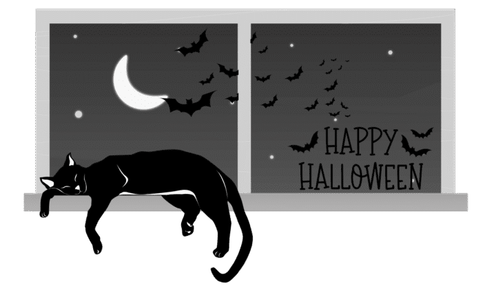 - Keep cats indoors – Halloween or not, it’s always safest to keep your furry friends inside (and by your side!).