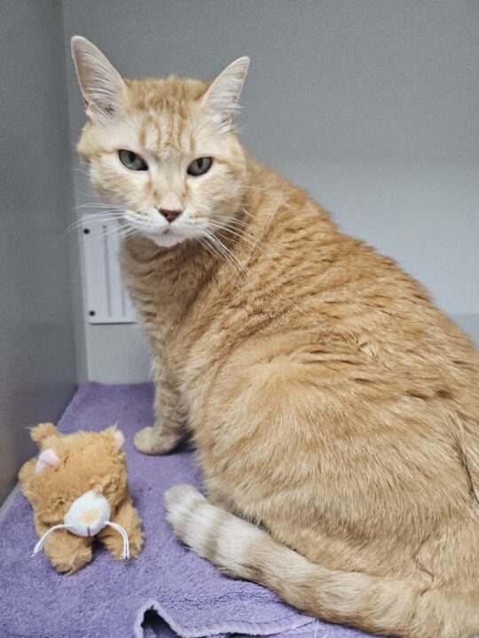 Goldie was originally adopted in 2023 by a home that loved him very much. But as his medical needs increased, so did the costs and resources required to support him. In May 2025, Goldie’s person made the difficult decision to return him to SAFe Rescue for a second chance.