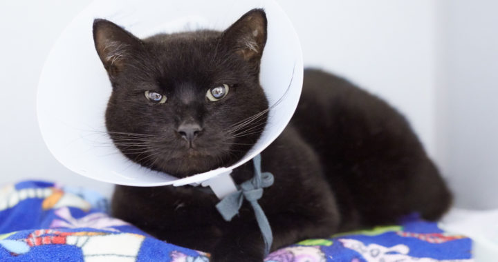 Felix arrived at a shelter in San Jacinto, California with a large wound on his back. Despite his injury, he soon showed himself to be a happy kitty, eager to please and grateful for any and all attention. He patiently wore a cone as he healed and purred for the shelter team there.